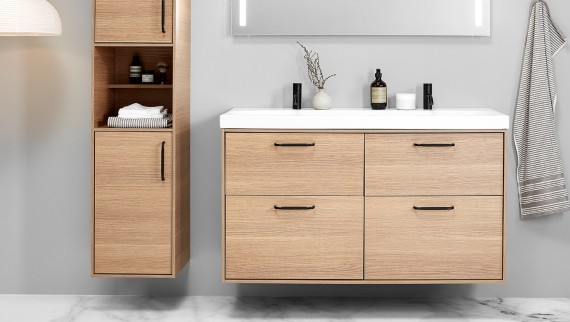 Juk Šiaurės šalių dizainas yra susijęs su ilgaamžių ir tvirtų baldų kūrimu. Pasirinkę iš natūralios šviesios medienos pagamintus vonios kambario baldus ir tvarias jungiamąsias detales galite sukurti tiek natūralų, tiek elegantišką vonios kambario dizainą.