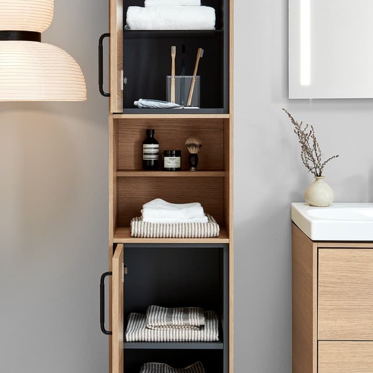 „Ifö Sense Art“ aukštos spintelės ne tik išnaudoja turimą erdvę, tačiau kartu tai yra praktiška vieta, kadangi spintelės durelių vidinėje pusėje galima tvarkingai susidėti savo daiktus. Švelniai užsidarančių durelių funkcija suteikia sklandaus veikimo ir prabangos jausmą. Taip pat galite balduose įrengti plaukų džiovintuvams, elektriniams dantų šepetėliams ir barzdaskutėms skirtus elektros lizdus.